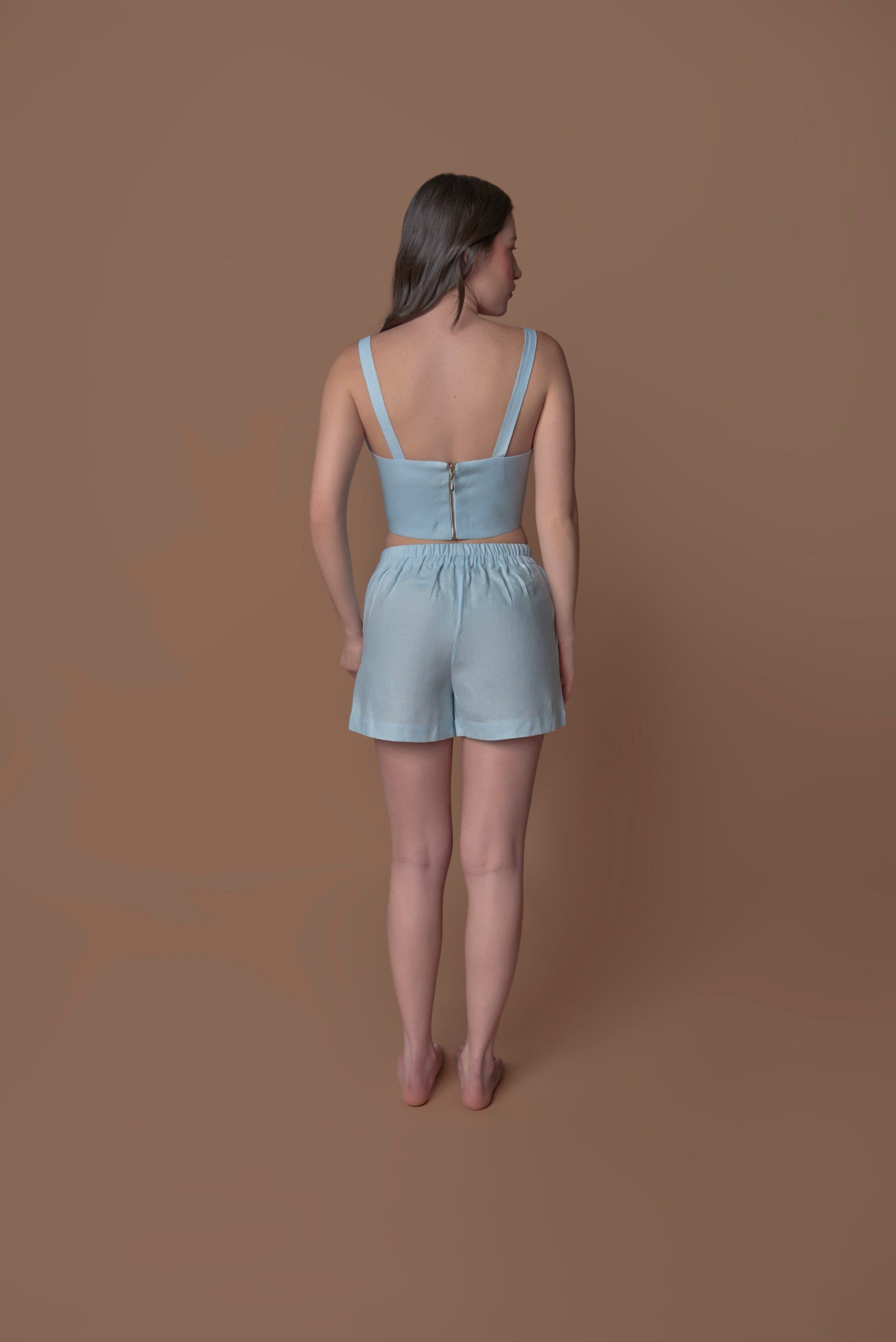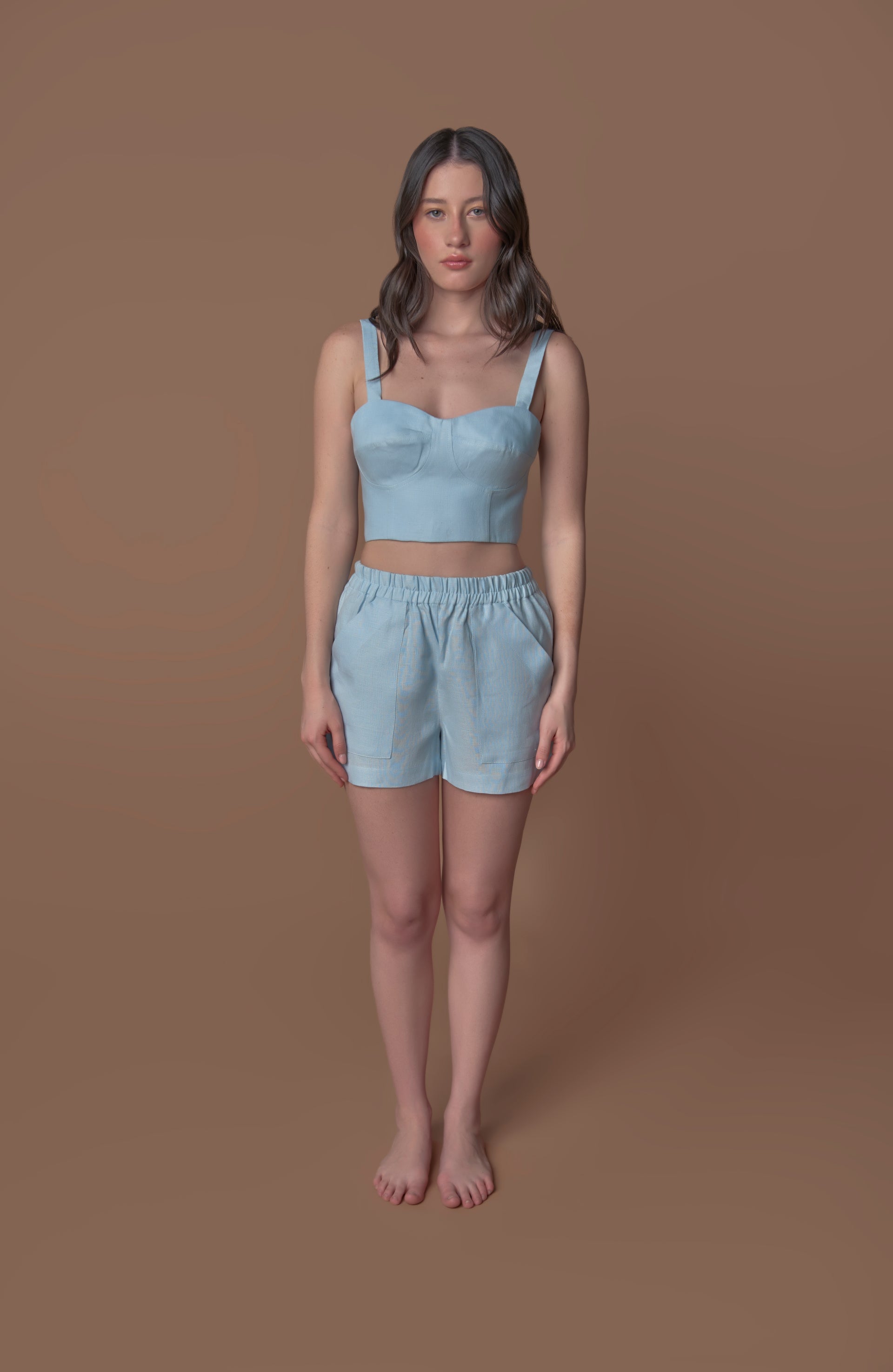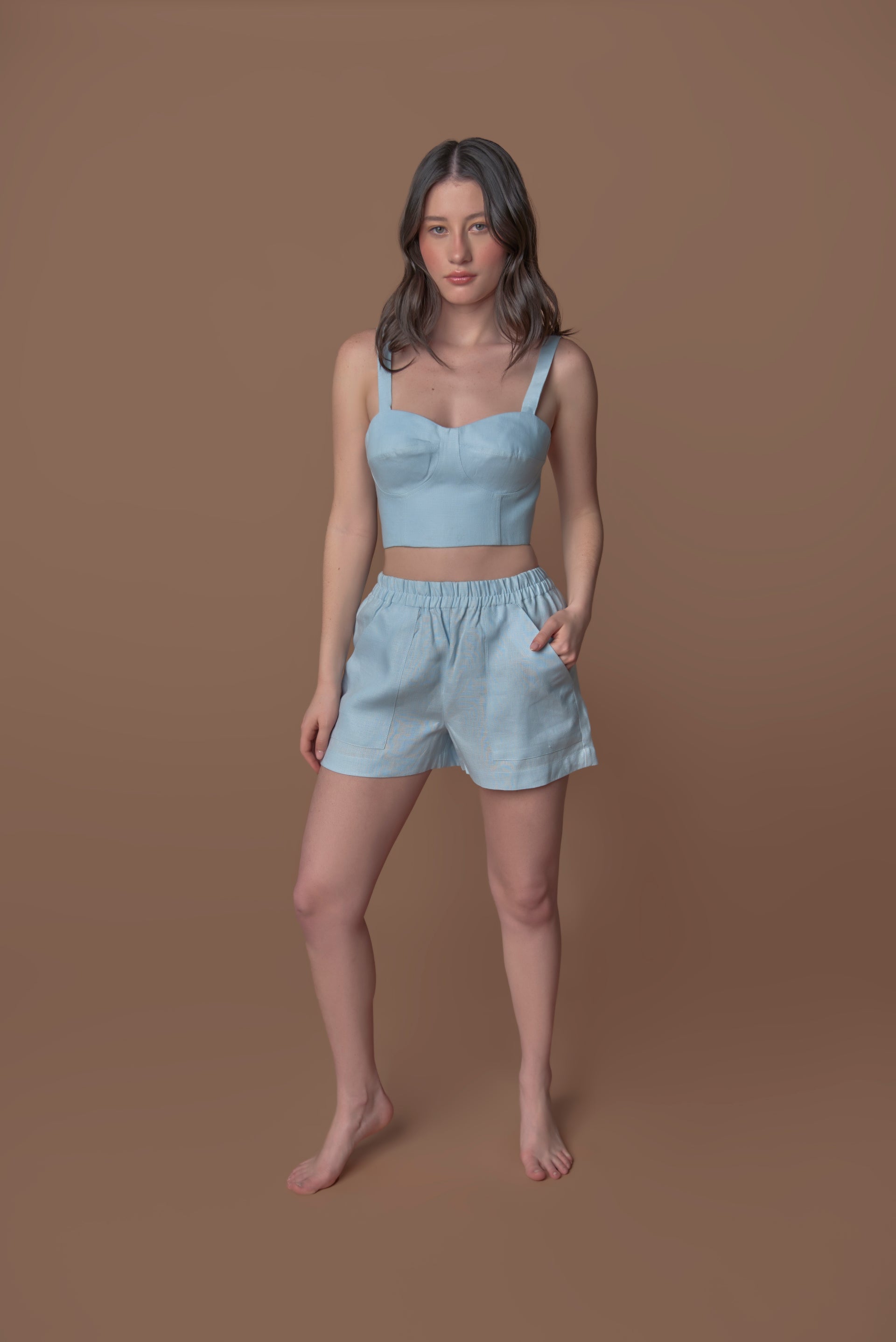 Diseñado para brindar frescura y estilo, este short de lino de talle alto combina comodidad y diseño. Su corte amplio permite libertad de movimiento, mientras que la cintura elástica fruncida se adapta suavemente al cuerpo, creando una silueta favorecedora. Los bolsillos tipo parche añaden funcionalidad y un aire casual, convirtiéndolo en una prenda clave para los días cálidos.